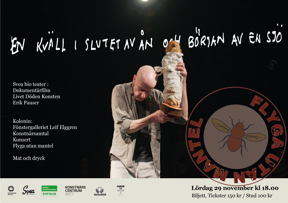 Vi bjuder in till konsert, ”Flyga utan mantel”, ledd av Klabbe Hörngren,Christian Cudra, Alfred Lorinius, Tomas Sandström där musiken blir ett flöde genom öron och ut i sjön.